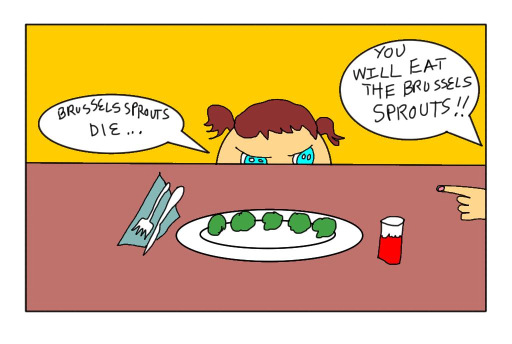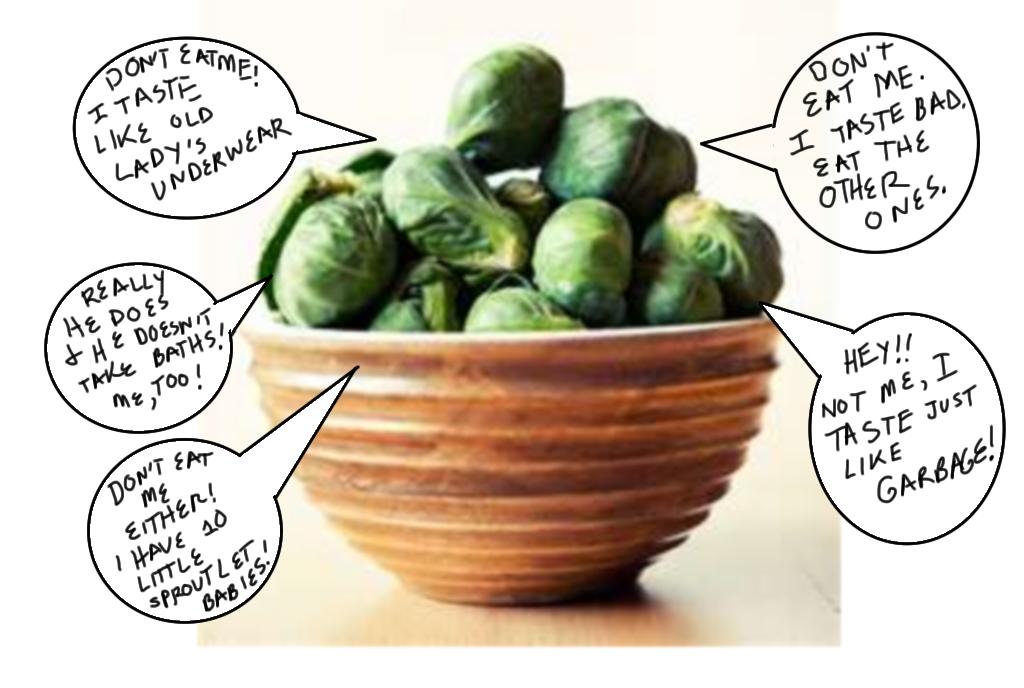 My mother served us...da da dahhhhhh...Brussels sprouts.