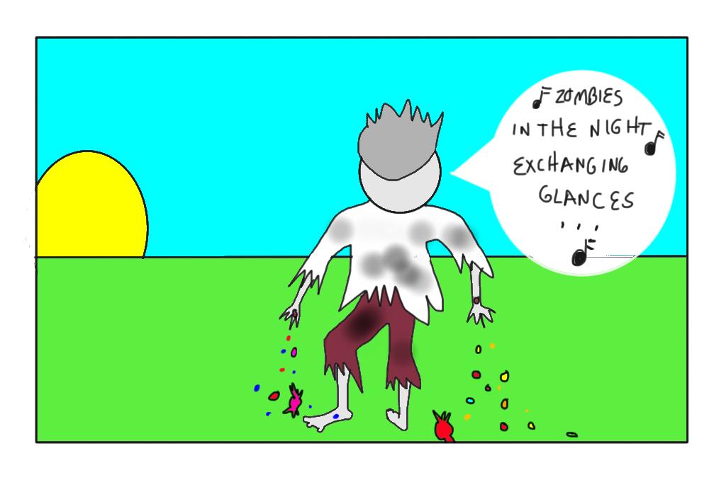 Once there were...candy zombies. These weren't normal zombies. Yes, they would eat brains, but only brains with cereal and milk. (Milk is good for the bones, and zombies have big issues with bones. They fall off. They stuff 'em back on. All that nonsense.) No, these were worse than the usual, typical fare zombie. They had the capacity to induce terror in even the bravest of souls and make the knees knock of super heroes everywhere. They were...