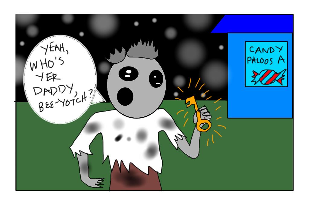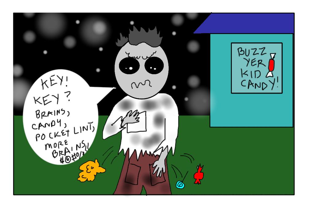 Anyway, to get this story back on track, the candy zombie had a special key. He looked everywhere for it.