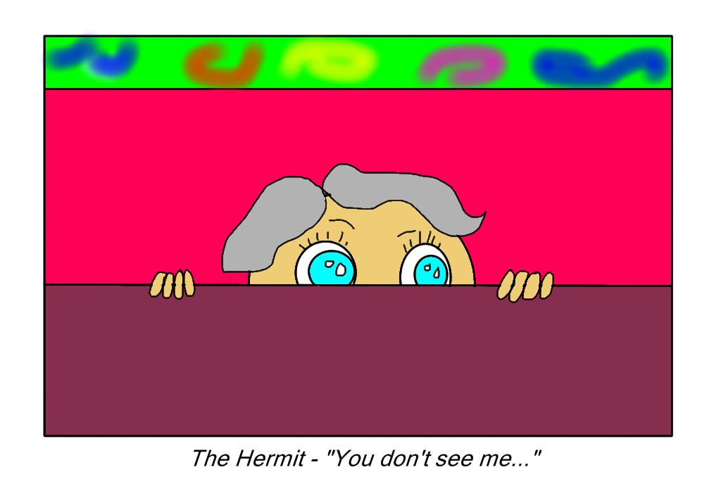 Finally, there's the Hermit. The Hermit Mommy sits alone, avoids eye contact, and ignores pretty much everything unless her child is shrieking bloody murder, has a bone sticking out of their leg and/or arm, or has arterial spray which is coating the ceiling in a bad way. The Hermit Mommy should not be confused with the Smart Phone Addict Mommy. Hermit Mommy is not playing with her phone constantly. Nor should she be confused with the Talker Mommy. Although Hermit Mommy may talk on her phone it is limited in nature and only because her mind is fried from child/mommy interactions and/or Chuck E. Cheese exposure.