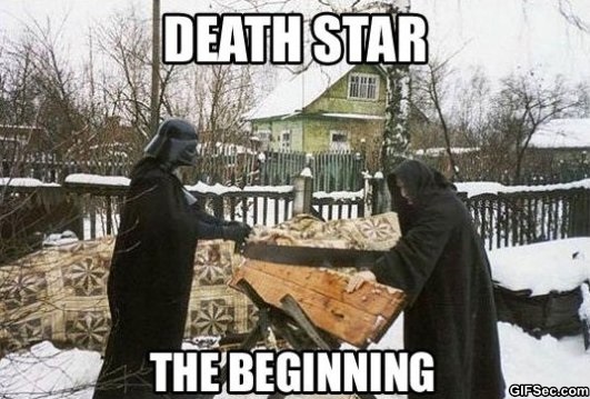 I have to stop for a minute to finish cursing and also to catch my breath, so have a death star meme.