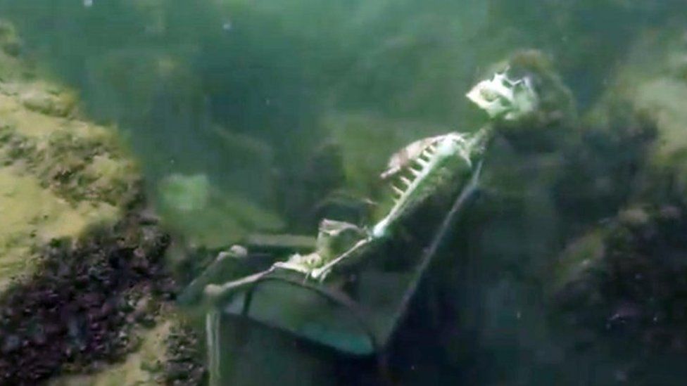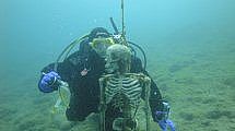 Photograph by La Paz County Sheriff's Department Honorable mention A snorkeler first reported the two skeletons in lawn chairs in the Colorado River near Cienaga Springs, Arizona in May of 2015. The La Paz County Sheriff’s Department and the Buckskin Fire Department sent a diver down with a video camera to see what he could see. What he could see was that it was two plastic skeletons with sunglasses, sitting in lawn chairs, having an underwater picnic. No murder scene and strange serial killer disposal site there. Although somewhat disconcerting, the underwater picnic isn’t really illegal and the skeletons got to stay there. No word has been forthcoming on the creator of the tableau.And that's about all the bones a fat woman could dig up, folks.