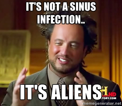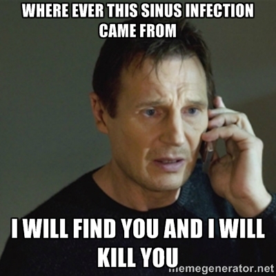 Sick again. Sinusitis for those of you who have to know. The actual definition for sinusitis is: Your entire face feels like it will simultaneously blow up and fall off and implode all at the same time plus lots of mucus.