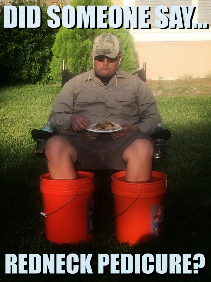 I look at this meme and I don't necessarily see pedicure.I see feet in concrete because his wife is PO'd.It was probably a good thing that I didn't understand Vietnamese because the man who was doing my feet was saying stuff. Since I didn't understand, I was all like, "I bet I know what you're saying." I was going to do some neat illustrations with my toe nails prominent and various "translations" as interpreted by moi, but my bamboo pad decided to flip me the bird. HIM has informed me that buying another one is a business expense, so it's on order. Anyhoo, we're at the place and Cressy's sitting next to me getting hers done. The guy doing her feet asks her how old she is, (11), and then proceeds to flirt with her. I mean, OMFG, RIGHT NEXT TO ME! I mean, her mother is SITTING RIGHT THERE! I had a strong urge to smack him with my Zoom, which would have been bad for the Zoom and might involved the police coming to arrest me. I told HIM about it and HIM said, "It's probably because he thought she was older." To which I responded, "But HE ASKED HOW OLD SHE WAS!" in a voice that could probably be heard by neighboring states. (The understated part was, "AND HE STILL FLIRTED WITH HER! The perv!")
