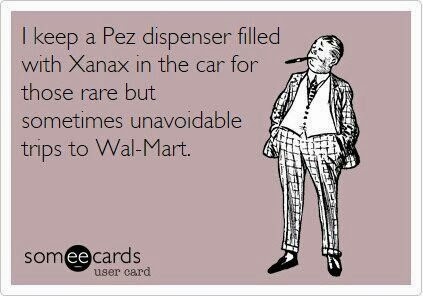 I totally need Xanax for most of my shopping experiences.To sum. I got the one stupid picture I needed for my daughter's social studies assignment and I hate Walmart more than ever.