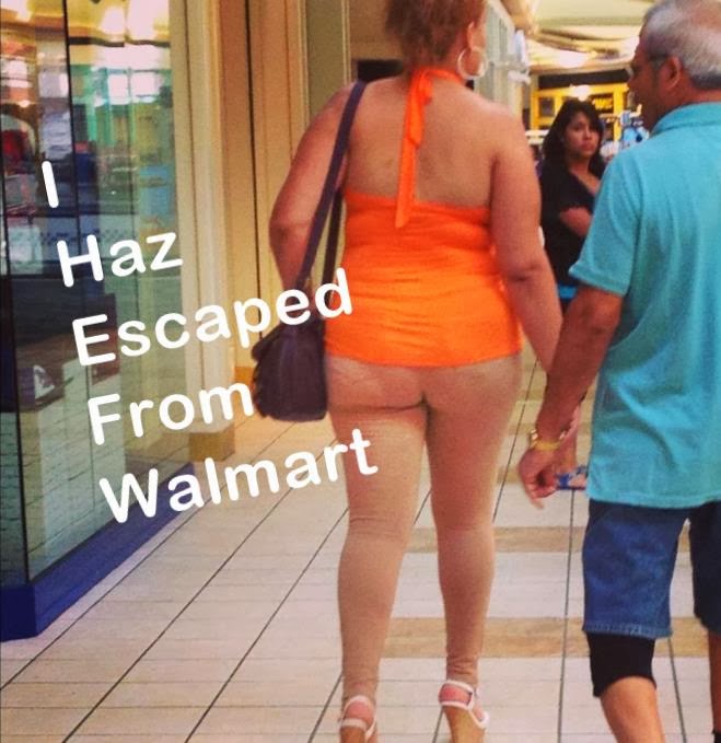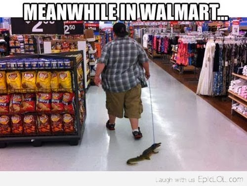 I had to think about this for a moment.(This is why I don't shop at Walmart anymore. That an incident back in the 90s which involved one of the senior citizen greeter/things chasing us out into the parking lot yelling, "YOU KNOW YOU'RE NOT SUPPOSED TO DO THAT!" True story. I swear.)