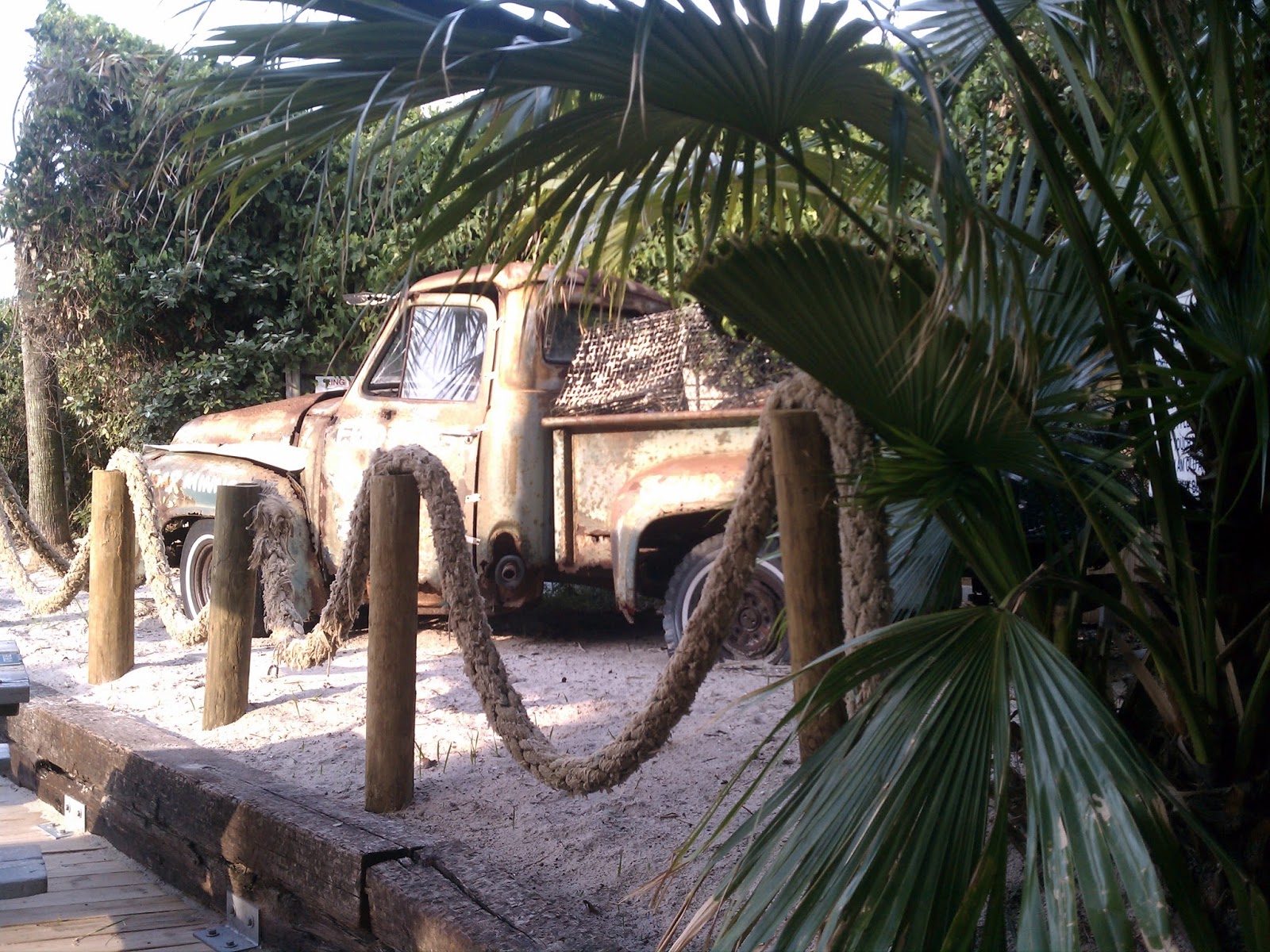 The restaurant also had an old truck. Booze, playgrounds, skinny cats,deep fried shrimp AND rusting vehicles.