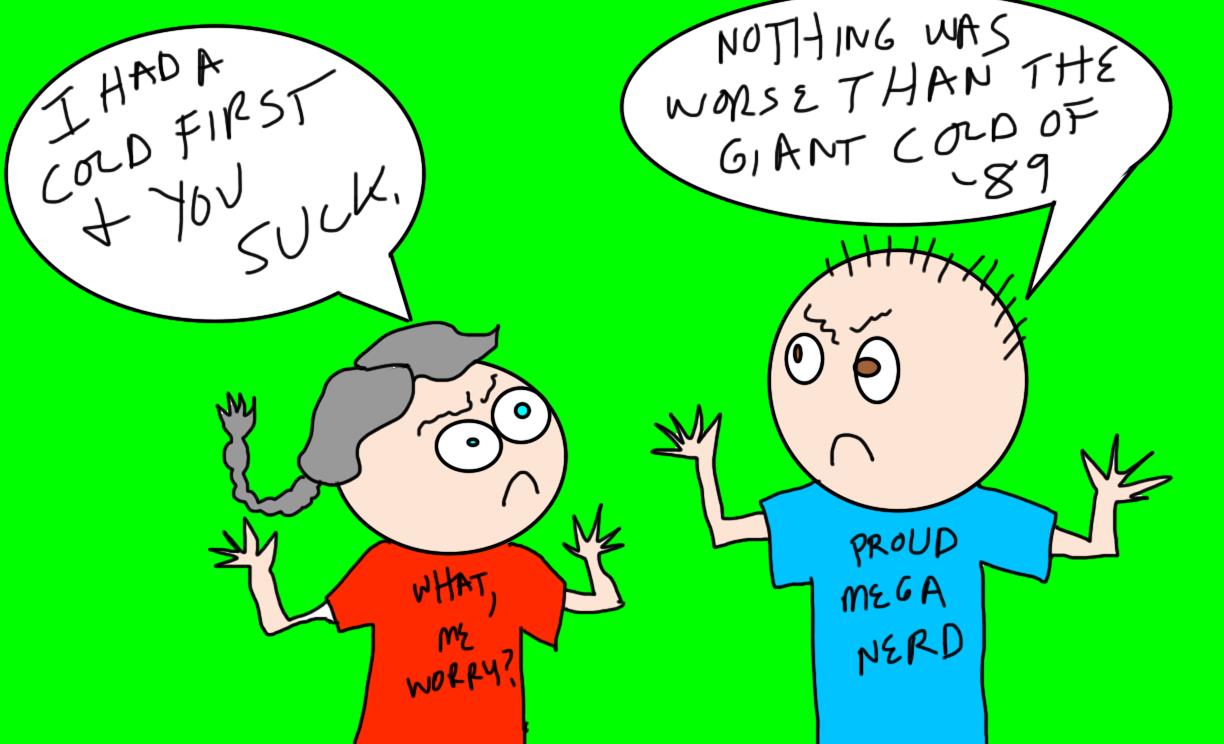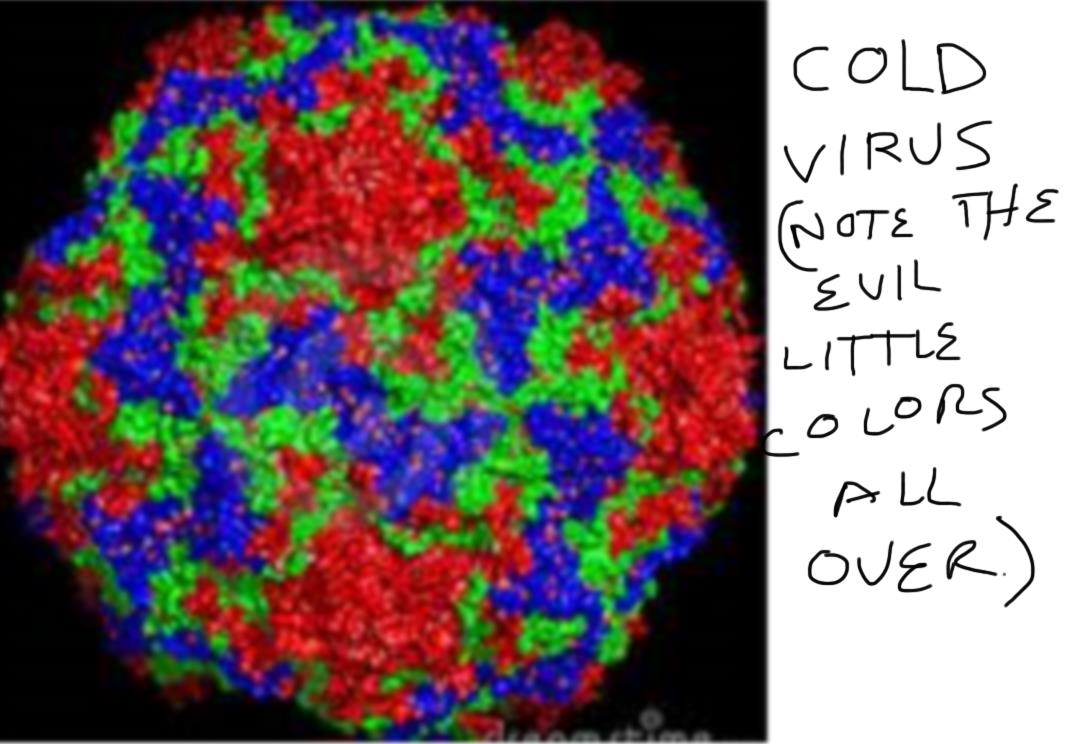 Colds are like frigging secret spies, determined to RUIN everything. Feeling good? Things going your way? Never fear the COLD VIRUS is here! It doesn't matter that it's summer time or that you haven't seen anyone with a cold for months because it's out to get YOU! Yes, YOU!