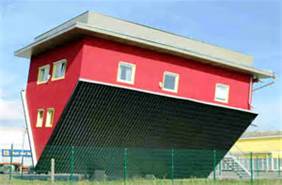The house the way it's supposed to be.(Not exactly to scale.)Recently we had some work done to our house. This is always a fun experience because it's like a vicious cycle. You see having something fixed in this house ALWAYS leads to having something else fixed. Usually the something else fixed is expensive. I'll give an example. Contractor A walks in, says, "Great, I'll get to work.", works. Then comes back for the payment and says, "Did you know your deck is pulling away from your house?" Our response is: "Why no, we didn't." Contractor A, who also builds decks, says, "If it keeps doing that, you'll have to have it torn down, and another one built. The footers were put in wrong and erosion is making them move." We say, "Oh, fab. We were already planning on eating Top Ramen and two day old bread for the next year anyway."