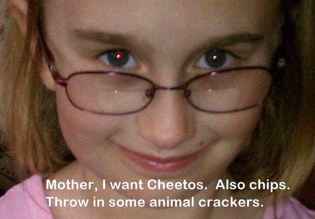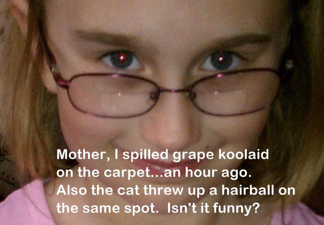 like this first thing in the morning.4. My daughter. She's nine now and her name is Cressy. So far she doesn't mind if she's in the blog. That'll probably change in the next few years. ("MOTHER! How could you? How could you? I'm running away to Bolivia with a biker named Shishkabob.") (Now I want to name a character Shishkabob.)