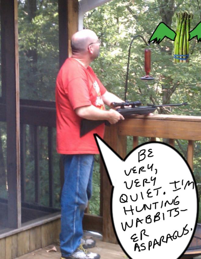 Hmm.But back to the theme of today's blog. (It's "Asparagus is our funny but nutritional friend." OR it's "How much can I tease HIM with pictures of asparagus inserted into pictures with him?")