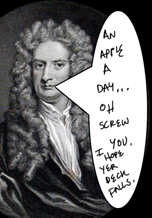 (Hell and damnation, now I'm going to have to go look at the proper spelling of Isaac Newton to make sure I got it right. I worship Google. Also Bing. Except when I'm searching for fingers in a dyke.)