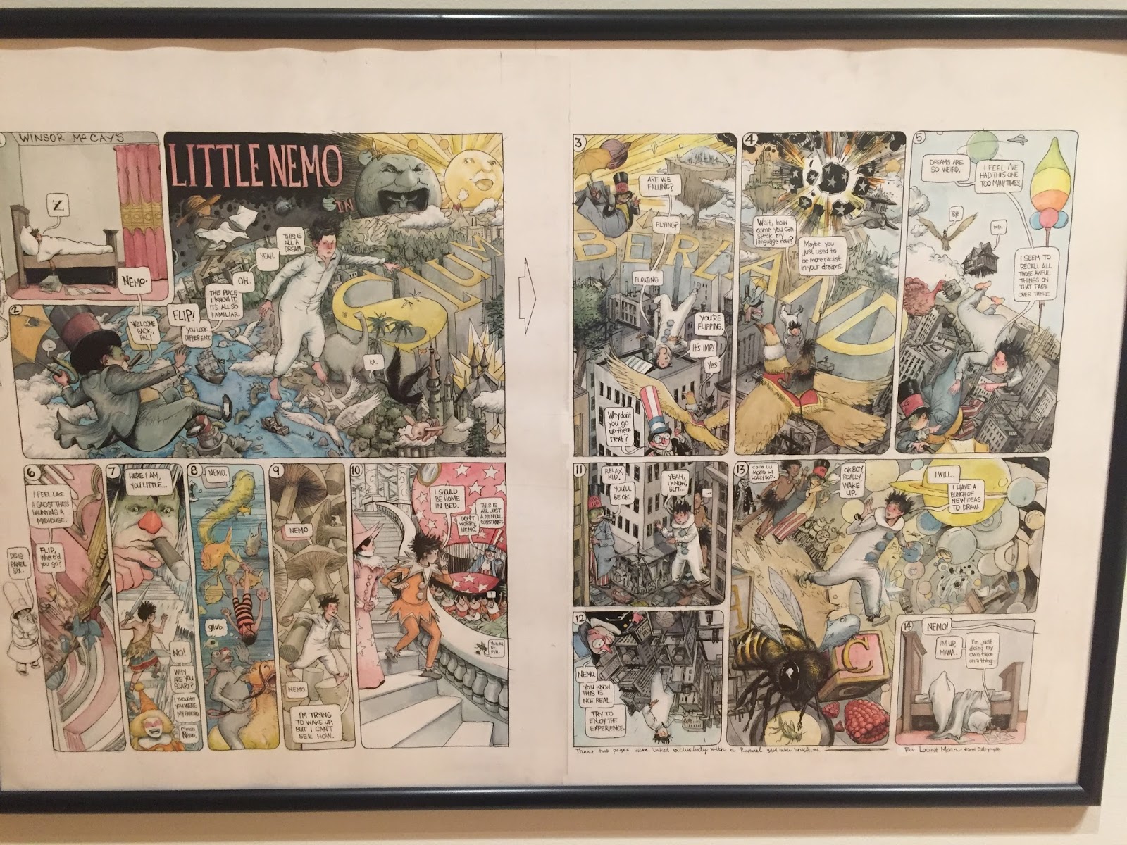 And finally, we went to the highlight of an amazing day, a visit to the Billy Ireland Cartoon Library & Museum, where I got to see the exhibit of comic strips and graphic novels, including examples from some very old newspapers, a large collection of original Calvin and Hobbes panels from Bill Watterson, a huge amount of Winsor McCay's Little Nemo in Slumberland , and originals from the tribute, Little Nemo: Dream a Little Dream . Also Chester Gould's actual drafting table where he wrote and drew Dick Tracy !