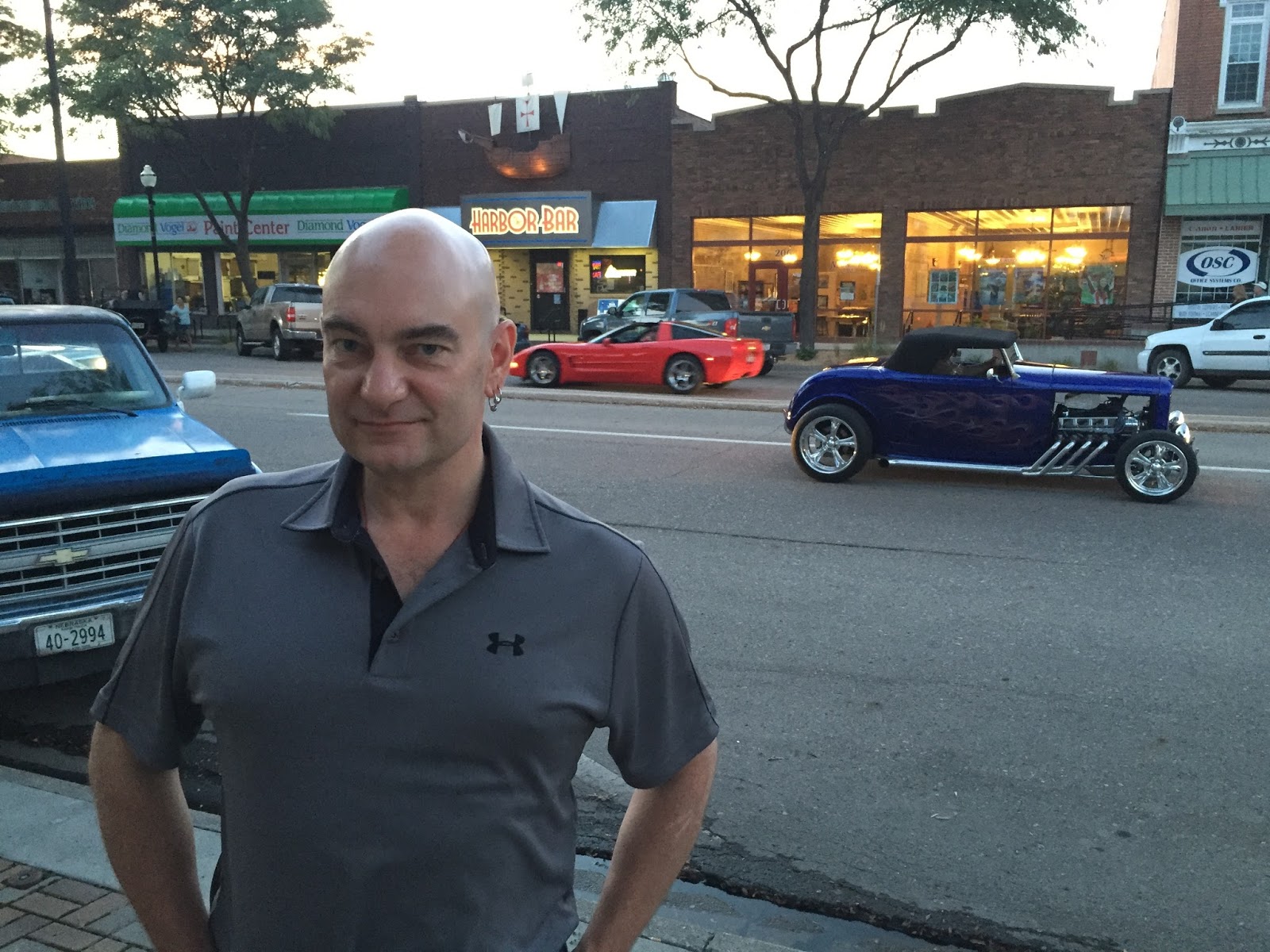 After dinner, Alan Gratz and I got a ride to downtown Norfolk. As it turned out, it was "Cruise Night," a couple-times-a-year event where classic cars, muscle cars, and, well, just car-cars drive up and down the main street and the whole town turns out on lawn chairs to sit and watch the parade. There was live music and food trucks, although we were both stuffed from dinner so we didn't sample. After walking up and down the strip several times, we ducked into Black Cow Fat Pig, where I sampled a local stout. Then Alan and I walked the 45 minutes back to our hotel, catching several Pokemon along the way!