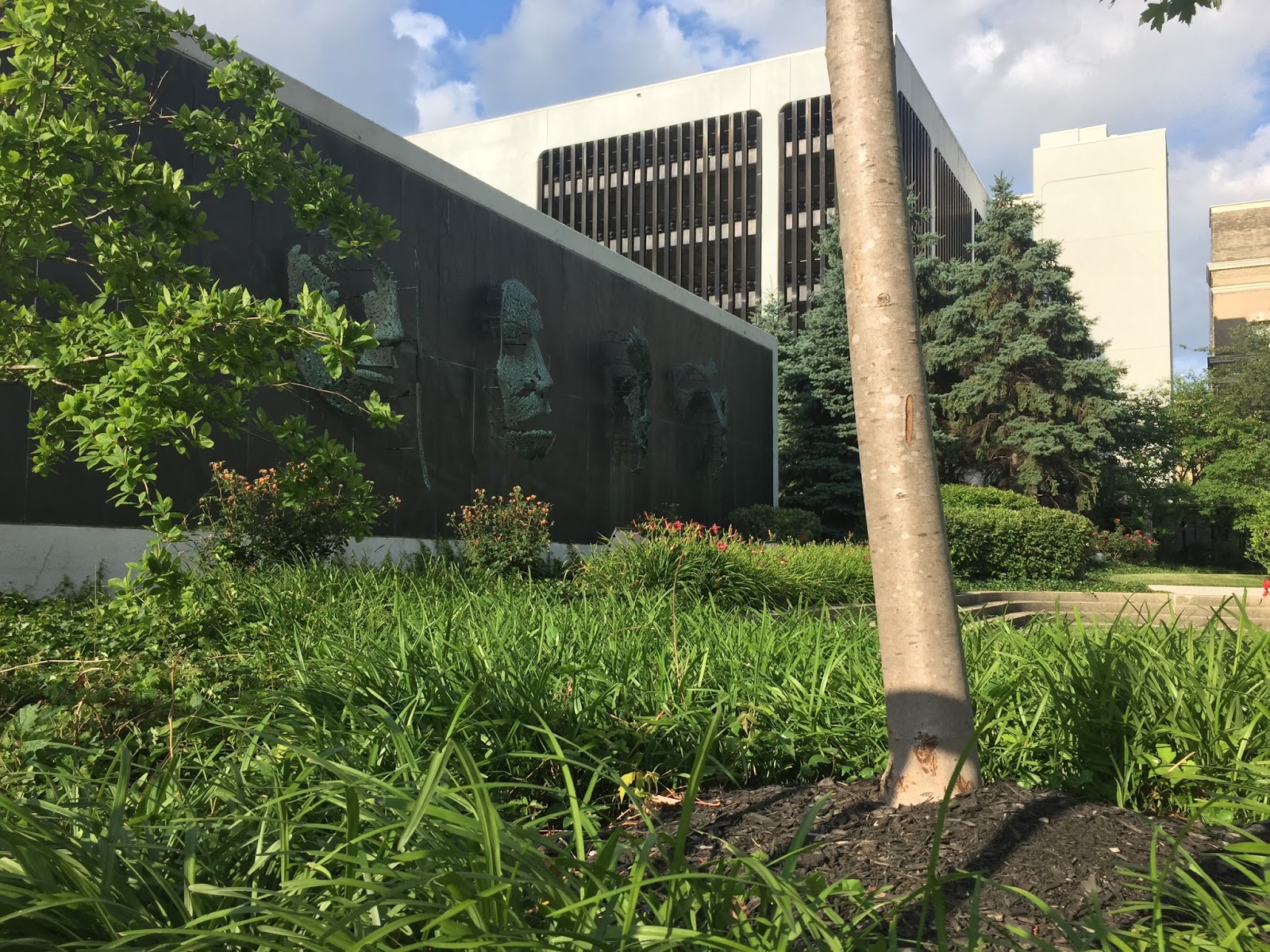 On the way back to Thurber House, I passed some weird faces on the wall in the private garden of some business or other. They reminded me of nothing so much as the hidden faces of David Bowie in Labyrinth. Inspiration for the book, perhaps? Time will tell.
