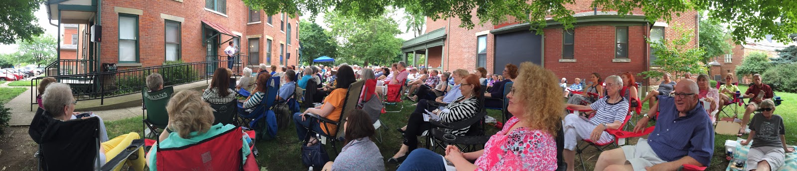 The afternoon was somewhat lazy--I'm wiped out after working late again last night. But this evening, at the Thurber House literary picnic, Robin Yocum read to us from his coming of age mystery novel, A Brilliant Death, and told stories about its setting, the real life town of Brilliant, Ohio. Yocum spoke to a crowd of about two hundred folks. He talked of how long and difficult a road the writing life is, and I was happy to see he had a long line of people awaiting his signature on books when I retired upstairs for the night.