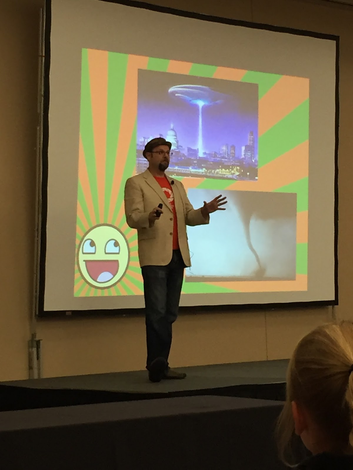 Then it was Saturday and time for the festival! Things kicked off at 9am with attendees choosing between five offerings, writing workshops taught by the four guests or a preview of all the Golden Sower nominated works. I taught a permutation of the writing workshop I perfected in the trenches in my recent sojourn in Columbus. The room was full and the students were great. Special shout out to two particular fans, the brothers who came in early and talked Pokemon Go with us!
