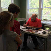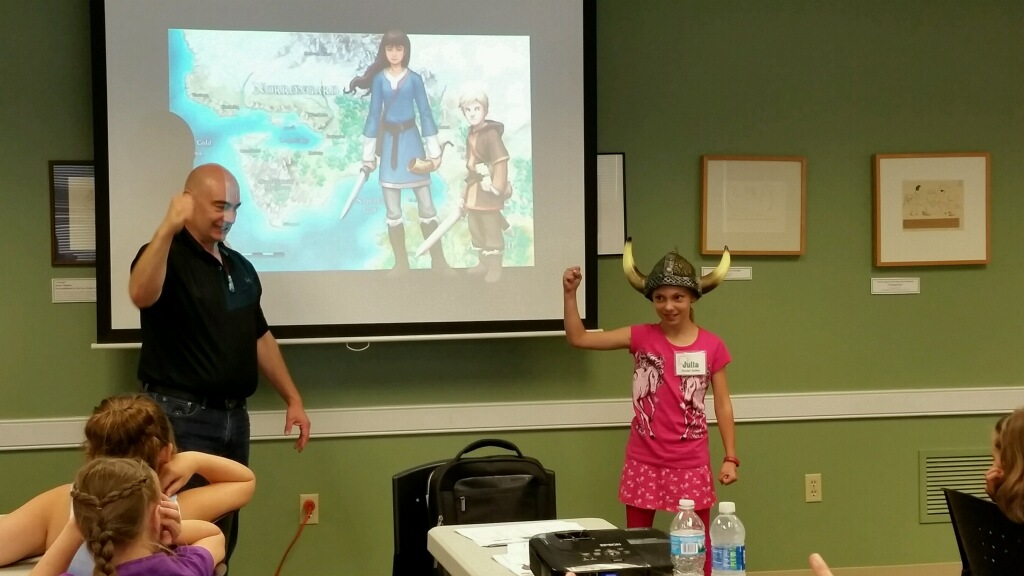 I am 4,687 words into the new project. I've reached Chapter Three, which is the chapter where our heroine discovers what she's going to have to do to survive this book. I'm very happy where things are going, although I haven't added very many new words today. That's because I'm still working out the specifics of what it is she's about to learn. When I know, she'll know!But we had another book signing for this week's group of campers at the Thurber Center. This time I signed in the center, not the house, for the kids that I taught last Wednesday. And what a signing it was! The Thurber House bookstore has nearly sold through its entire stock of Frostborn (and the four remaining are spoken for), so they're going to have to reorder because I'm only halfway done with my Children's Writer-in-Residence stint. It was a great bunch of kids this week and I really enjoyed teaching them, as well as meeting some of the counselors.