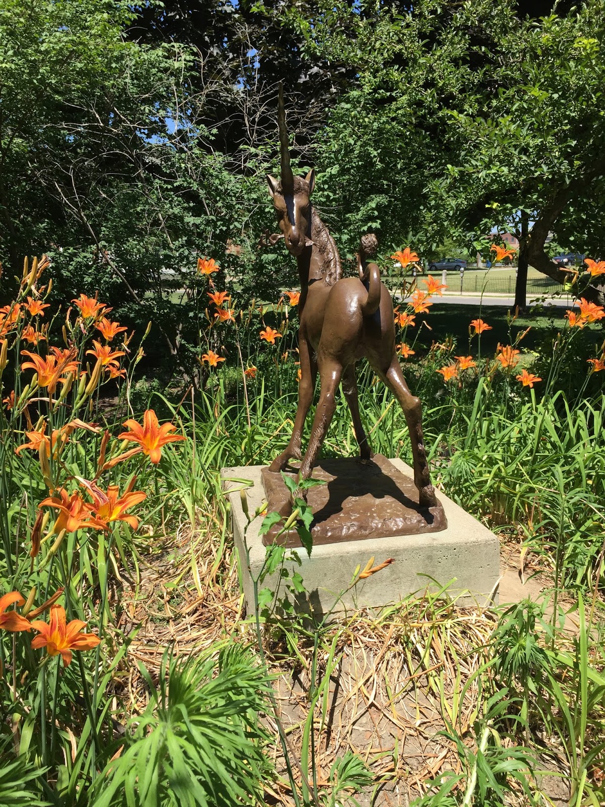 Meanwhile, here's a unicorn munching on some roses, in the park across from Thurber House. It sprang from his mind and the story it comes from is on a plaque on the ground. The rest of the park is well-manicured but the unicorn gets a sort of flowery grove to himself.