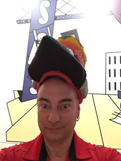 Oh, and I wore a funny hat and took my picture against a Cubist background.