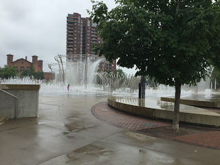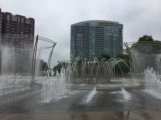 I walked from Thurber House to downtown with the intention of doing "the Scioto Mile" when I got there, and I did start down the path that parallels the river, but then the rain started in earnest. I walked in the rain for a bit, but decided that if it starting lightening (as predicted by my weather app) that being next to buildings one could duck into might be good.