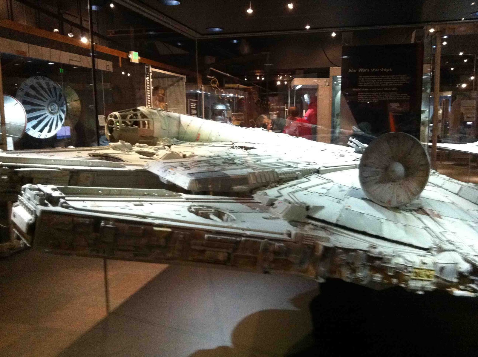 Then Sunday was a final panel in the AM, and I was cut loose to explore Seattle with my family. Thanks to Rob Stewart, who not only arranged my travel to the con, but also got my family passes to the Experience Music Project/Science Fiction Museum and to the Star Wars: Where Magic Meets Imagination exhibit at the Pacific Science Center. The Battlestar Galactica exhibit at the former was great, and the Star Wars exhibit at the later was amazing. In fact, I was looking at this original model of the Millenium Falcon when the Hugo Awards nominations were announced. Obviously, I'm honored to be nominated in the category of Best Professional Editor, Long Form for a fifth year running and thrilled with Ian McDonald's nomination for