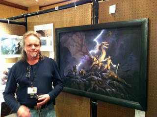 Then it was to the art show reception, where I had a lovely conversation with Artist Guest of Honor Kinuko Y. Craft's husband, and caught up with old friend Todd Lockwood. Todd built his art show display this year around the gorgeous-beyond-words cover illustration he did for the Pyr edition of Tom Lloyd's The Stormcaller