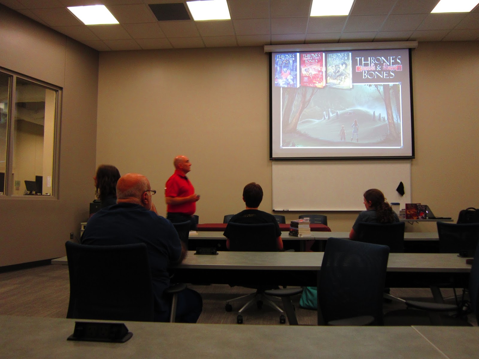 This past Saturday, June 4th, I was a guest of the Athens-Limestone Public Library's 2nd Annual Catfish Literary Festival, held in Athens, Alabama. There were no catfish in attendance that I could see, but there were some 33 Alabama authors exhibiting their works. I participated in a science fiction and fantasy panel and then gave a solo presentation on the world of Thrones & Bones. Thanks to host Kristopher Reisz, director Paula Laurita, and everyone else who came out to the show(and especially to those who bought books!).