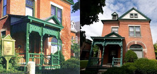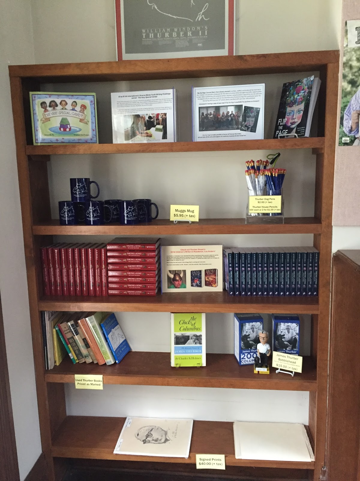 Now, let's pause here in the Adventures of Lou for a bit on the house itself, a three-story historic building which served as the home of author, humorist, and New Yorker cartoonist James Thurber and his family from 1913 until 1917. Since 1984, (the year, not the book or the album by Van Halen), the house has served as a non-profit literary center and museum of Thurber materials. The first floor of the house has a bookstore, which currently has a very nice display of