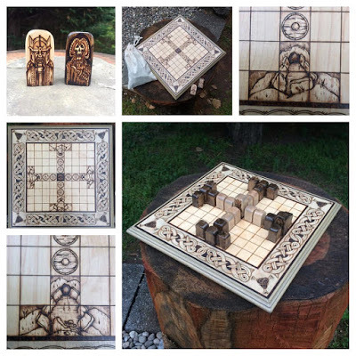 After some scouting, he found Ignited Arts & Design, the company of an artist named Jack Windsor. Jack does amazing work, and he specializes in hnefatafl boards, the real world Viking game that served as inspiration for Norrøngard's Thrones & Bones (though there are a few differences between Earth's game and the Qualth game).