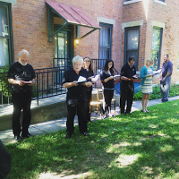 After working this morning, we set out again for the Homeless Families Foundation's Dowd Education Center, where I met with the same group of kids from the day before. This time, I lead them through a series of exercises utilizing what I'd taught them on Monday. The kids were great--some really bright, imaginative answers--and I was delighted that several students had considerably fleshed out plots by the end of the hour. This stuff took me decades to learn and they've absorbed it in days. No doubt I've created my future competition this week, and proud of it!Returning to Thurber House, I tested out a new portable blender and made my usual lunch of yogurt and fruit protein shakes. New blender doesn't do frozen fruit well, so I ate that with a spoon but the rest was great. Then I walked 36 minutes to The Book Loft of German Village, which boasts 32 rooms of books. I was understandably lost inside for a bit, then I hoofed it back in time to get ready for the evenings reception (ahem, in my honor, ahem), the highlight of which was a performance by the Thurber Chamber Theater who did dramatic readings of short fiction by James Thurber. And there were cookies!