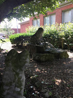 As I left Thurber House to go next door where their Summer Camp programs are held, in the little garden outside, full of statues of James Thurber's dog Muggs, a rabbit ran right past me and into the bushes.