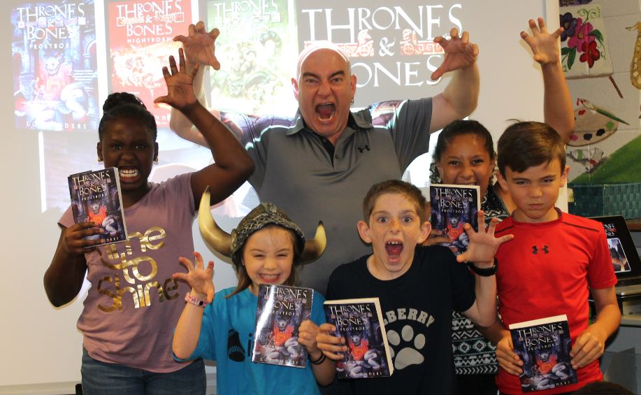 This week, I made a return visit to Gwinnett County, Georgia for two school visits. On May 11th, I was a guest of Dacula Elementary School. I previously visited Dacula for an evening appearance at their Scholastic Book Fair. This time, I came back during the day to give three separate Thrones & Bones book presentations to their third, fourth, and fifth classes respectively. It was a great time, and all together I spoke to around 560 students across the three grades. What's more, the students had made some fantastic Thrones & Bones fan art--always a highlight of school visits!