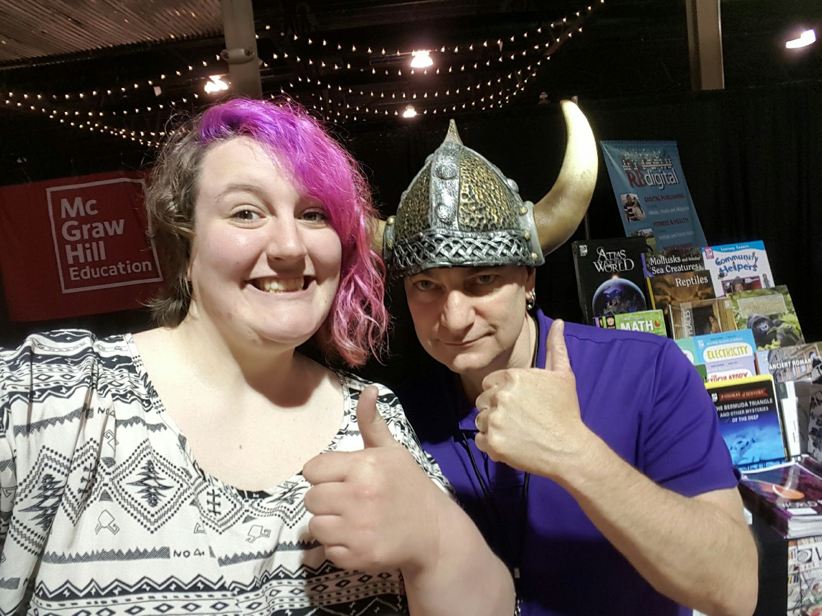 With my handler Annabelle. Thumbs up!Last night, I drove to Gadsden, Alabama for the Alabama Library Association 2016 Annual Conference. I was there for the Author Expo, which was held at 210 at the Tracks, an event venue in downtown Gadsden. I got there an hour early so that I could visit Dragon Quills, the local comic and gaming store. Dragon Quills even has a small SF&F book selection, and I was tickled to see some fantasy books I edited on their shelf.4pm saw a reception for the attending authors, about thirty of us, and then we were paired at booths with an equal number of exhibitors from 5pm to 8pm to mingle with librarians from around the state and sign books. Booksamillion was on hand with copies of Frostborn (in paperback) and Nightborn (in hardcover). I signed lots of books, met tons of wonderful librarians, and nearly sold out of Booksamillion's stock.