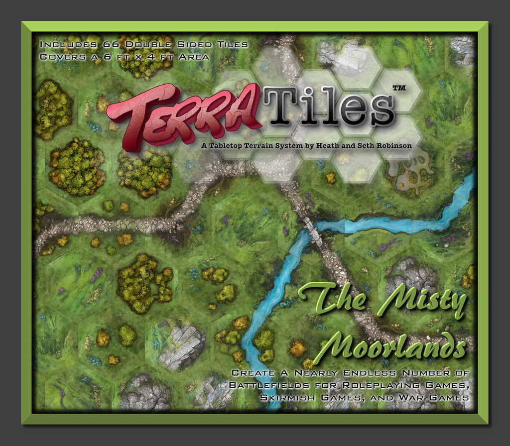 As I have spoken about here before, I'm currently running a Fate Core System role playing game for my son, my nephew, and some other boys their age that is set in the world of my Thrones & Bones series. We've been on break since the Christmas holidays but we're gearing up to start back. For our next campaign, I wanted to kick things up a notch. Although Fate doesn't require it, I'm going to introduce pawns--I'm using pawns from Paizo's Pathfinder Pawn's from the Beginner Box and the Pathfinder Pawns: Bestiary Box 1 set. And we're also going to start using some terrain.Towards that end, I've just gotten TerraTiles: The Misty Moorlands from Rainn Studios. TerraTiles are large, nine inch, double-sided, tiles that depicts a variety of terrains. They are modular, and you place them together on your tabletop to create customizable terrain for role playing games and war games. I've been excited about Rainn Studios for a while, at least in part because they were founded by two brothers in my hometown. So far, they've produced a strategy board game and two TerraTiles sets, the aforementioned Misty Moorlands and a Coast and Rivers set. They are about to launch a third TerraTiles Kickstarter. It's going to feature three different types of terrain, including a snow-bound land, for which I'm obviously very excited.