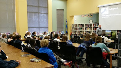 Last week, I visited Mountain Brook Junior High School, where I taught my ScripTips writing workshop to around 24 students from their writing club. This is a presentation where I use examples from contemporary films to teach plotting and outlining. It went over very well, though it is sad to me that the Matrix is now a classic film and not something junior high students know!