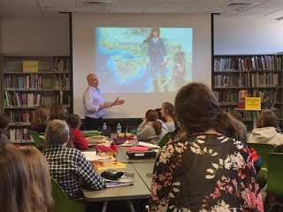 Today, I returned to Mountain Brook Junior High to give a Thrones & Bones presentation to about 60 students drawn from the writing club, the book club, the drama club, the art club, and the graphic novel club.There were maybe 10-15 students from last week coming back and the rest new, but all with an interest in various things creative.