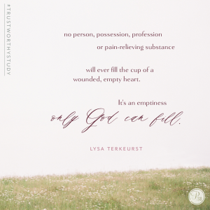 No person, possession, profession or pain-relieving substance will ever fill the cup of a wounded, empty heart — not my heart, not your heart. It’s an emptiness only God can fill.