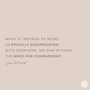 We must get to this place of self-compassion if we ever hope to have true, deep compassion for others. Disappointment begs us to be secretly disgusted with everything and everyone who has gaps, everything and everyone who also wrestles with the “not good enough” script. But what if, instead of being so epically disappointed with everyone, we saw in them the need for compassion?