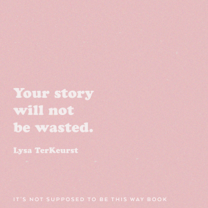 “Hold on to this, Lysa, for as long as you need it. When the battle gets so fierce you wonder if you will survive, remember this moment of my telling you that you will make it through this. If God gave out purple hearts, you would absolutely receive this high honor. What you are going through won’t be for nothing. Your hurt will not be wasted. It will be for the saving of many lives.”