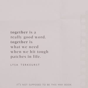 Together is a really good word. Together is what we need when we hit tough patches in life.