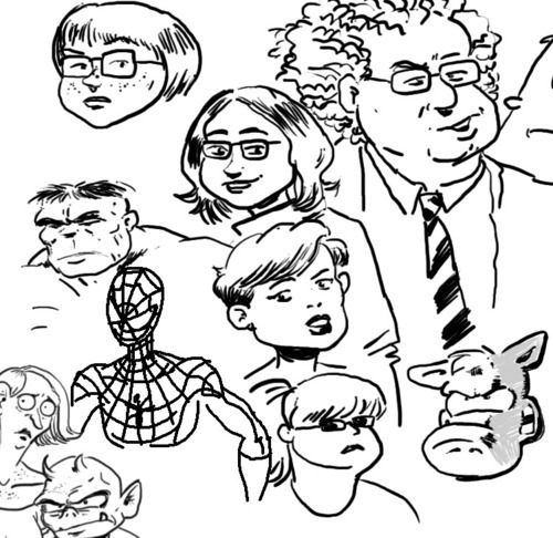 Day 2 of my playing around with the new Bamboo tablet. One thing that will take some getting used to is not looking at my hand while I draw. Also, I think my computer needs a bit more power under the hood, since there were times what was one screen lagged behind what my hand was doing (fortunately we’d been talking about getting a new one anyway).