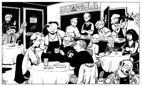 I will concede that most diners don’t have table cloths but it spared me having to draw all those feet and legs.
