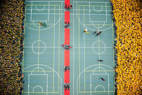 4,979 students, staff, and faculty members gathered to throw big red balls at each other for over an hour.