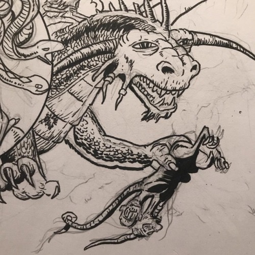 Dragon and her prey #Inktober Day 2! Part of a bigger drawing again but it still counts!