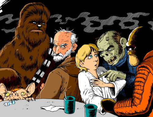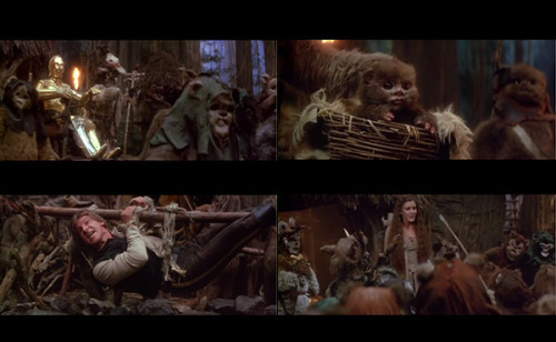 Return of the Jedi, minute 73: Preparations for the big celebratory dinner honoring Golden Tony continue…over the protests of the main course! Guest commentator Crystal Beth brought some coffee cake for after.