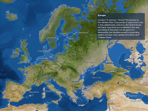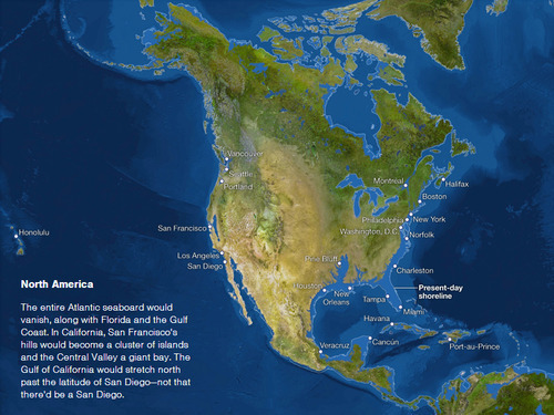 Explore the world’s new coastlines if sea level rises 216 feet (66 m).