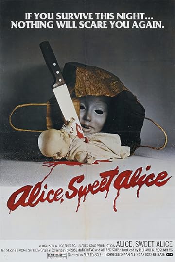 Great, creepy little horror movie that I finally caught, thanks to a late night showing on TCM. Though it's mostly known as Brooke Shields film debut, she dies in the opening minutes (er, spoilers) and the movie actually revolves around her sister Alice (Paula Sheppard, very good), who (a) might be crazy and (b) might have killed little Brooke "Alice Sweet Alice" delves deeply and disturbingly into the mysteries and madness of the Catholic Church, and it's full of strange, sometimes shocking moments that raise it several notches above the level of your average horror movie. (The scenes involving her obese, perverted neighbor are more than worth the price of admission.) If you're seeking something different in a horror film, by all means, check this one out. It's damned good.