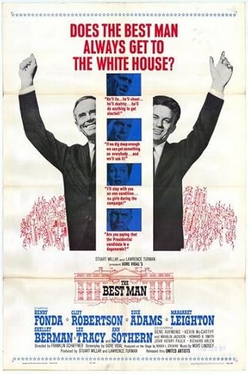 Interested, dated (and interestingly dated) political drama about the competition between two contenders for their party's presidential nomination. One of them, the older, wiser, more trustworthy candidate, is played by (who else?) Henry Fonda. The other, a younger, less scrupulous, more hard-nosed candidate, is played by Cliff Robertson. What makes the movie -- written by consumate insider Gore Vidal and directed by a pre-"Planet of the Apes" Franklin Schaffner -- interesting is that the lines aren't quite so cleanly drawn. Fonda has a history of extra-marital affairs that everyone has been covering up, and if Robertson is a weasel (and he is), at least he's an unapologetic one. The big twist involves a possible homosexual affair deep in Robertson's military past (with Shelley Berman, of all people!), and the suspense comes from learning whether or not Fonda will use this bit of salacious gossip (whether it's true or not) to wreck Robertson's chances. The movie ends with a twist that manages to be both underwhelming and surprising, so I won't spoil it here, on the off chance that you actually are inspired to watch a 52-year-old political movie thanks to this blog post. Bonus points go to the cast, which also includes Edie Adams, Ann Sothern, Kevin McCarthy and one of my favorite actors the pre-Code era, the great Lee Tracy.