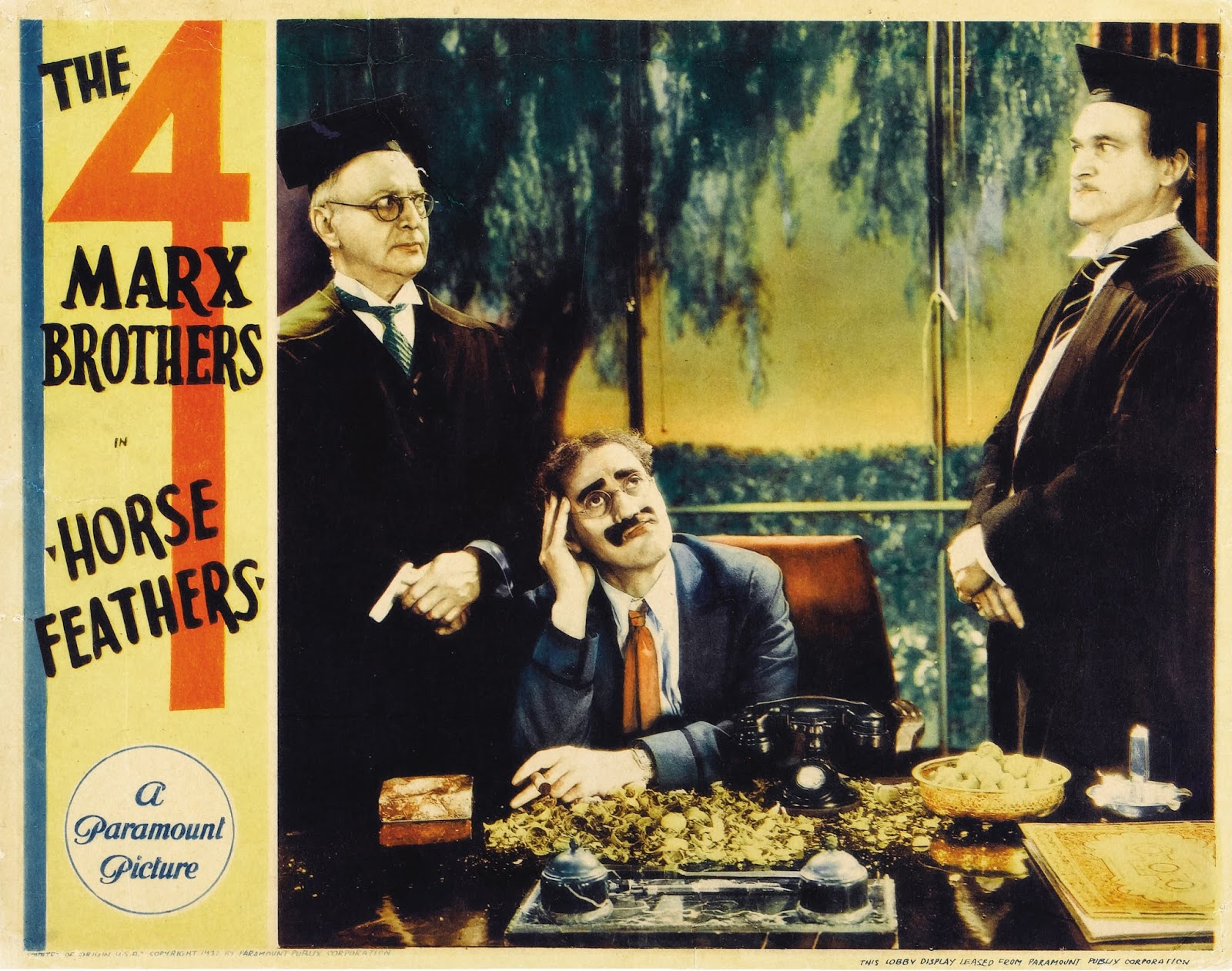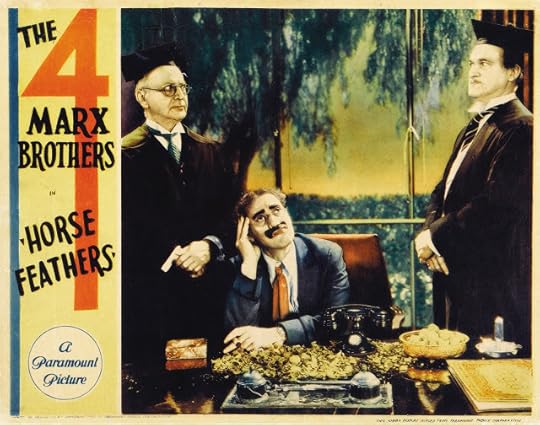 Yes, "Horsefeathers" again. Allie wanted to watch it, and who am I to say no? A, I love the movie (like I've said before, I think it's probably, laugh-for-laugh, the most purely funny Marx Brothers movie), and B, in no time that daughter of mine is going to be obsessed with a load of modern pop culture that I have no connection to (or, I'm predicting, interest in). So as long as she's in, I'm in.